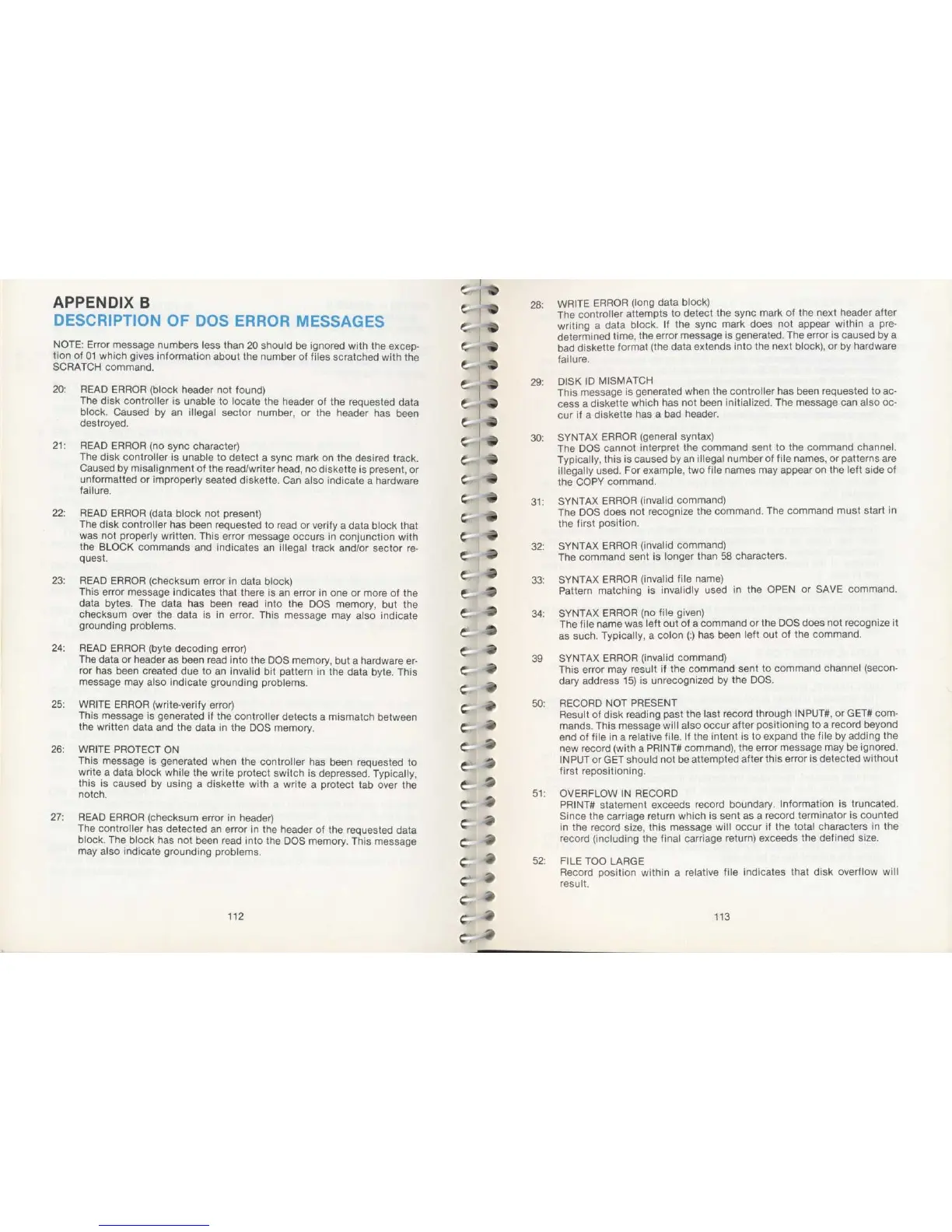 Commodore SX-64 - Description of Dos Error Messages