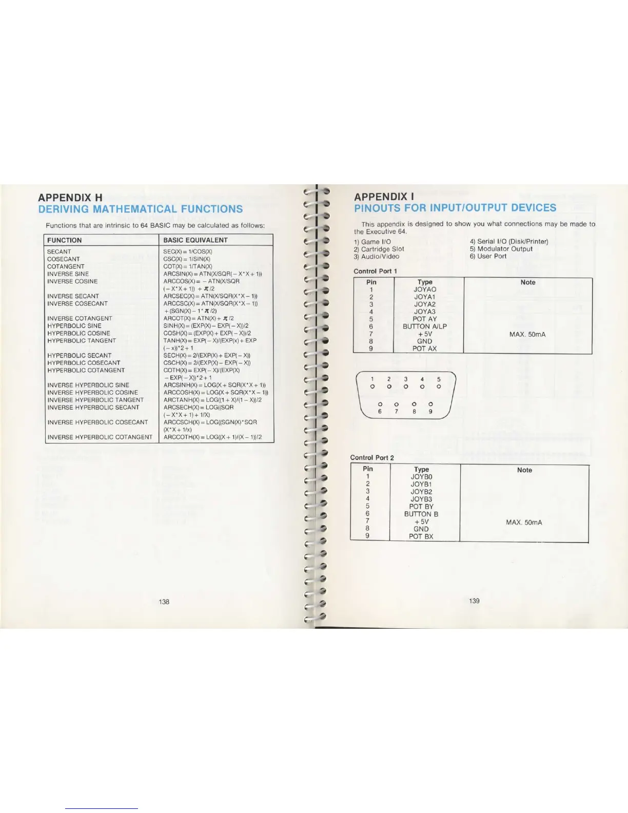 Commodore SX-64 - Deriving Mathematical Functions; Pinouts for Input;Output Devices