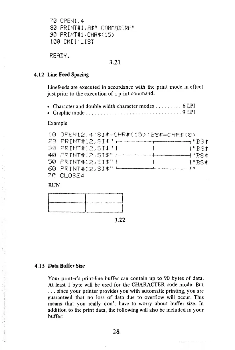 Commodore VIC-1525 - Line Feed Spacing; Data Buffer Size