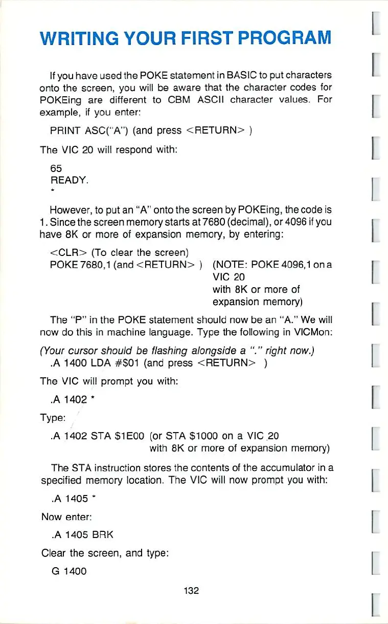 Commodore VIC-20 - Writing Your First Program