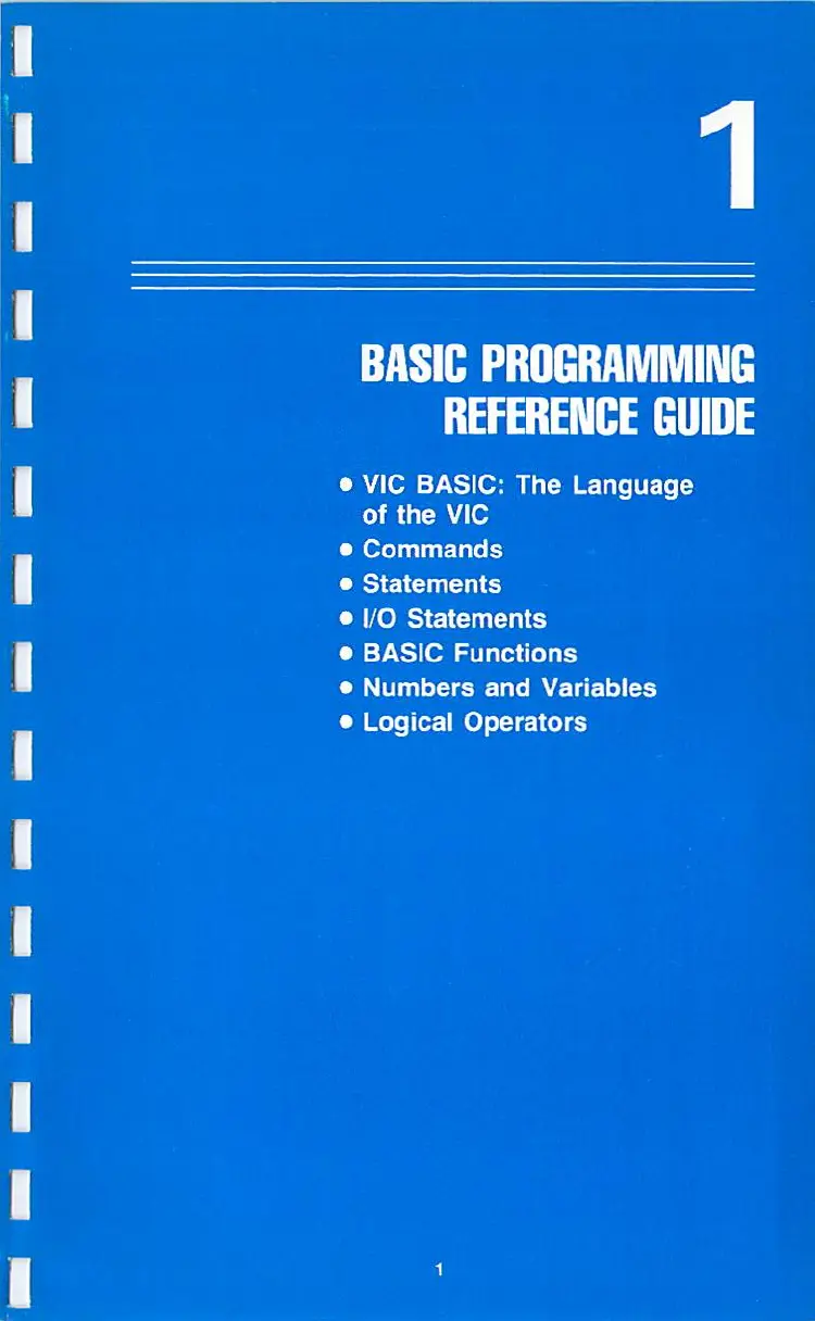 Commodore VIC-20 - 1 Basic Programming Reference Guide