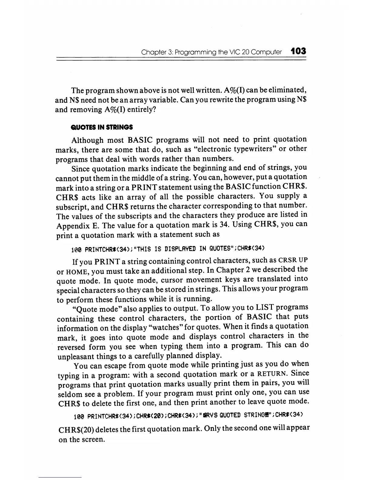 Although most BASIC programs will not need to print quotation