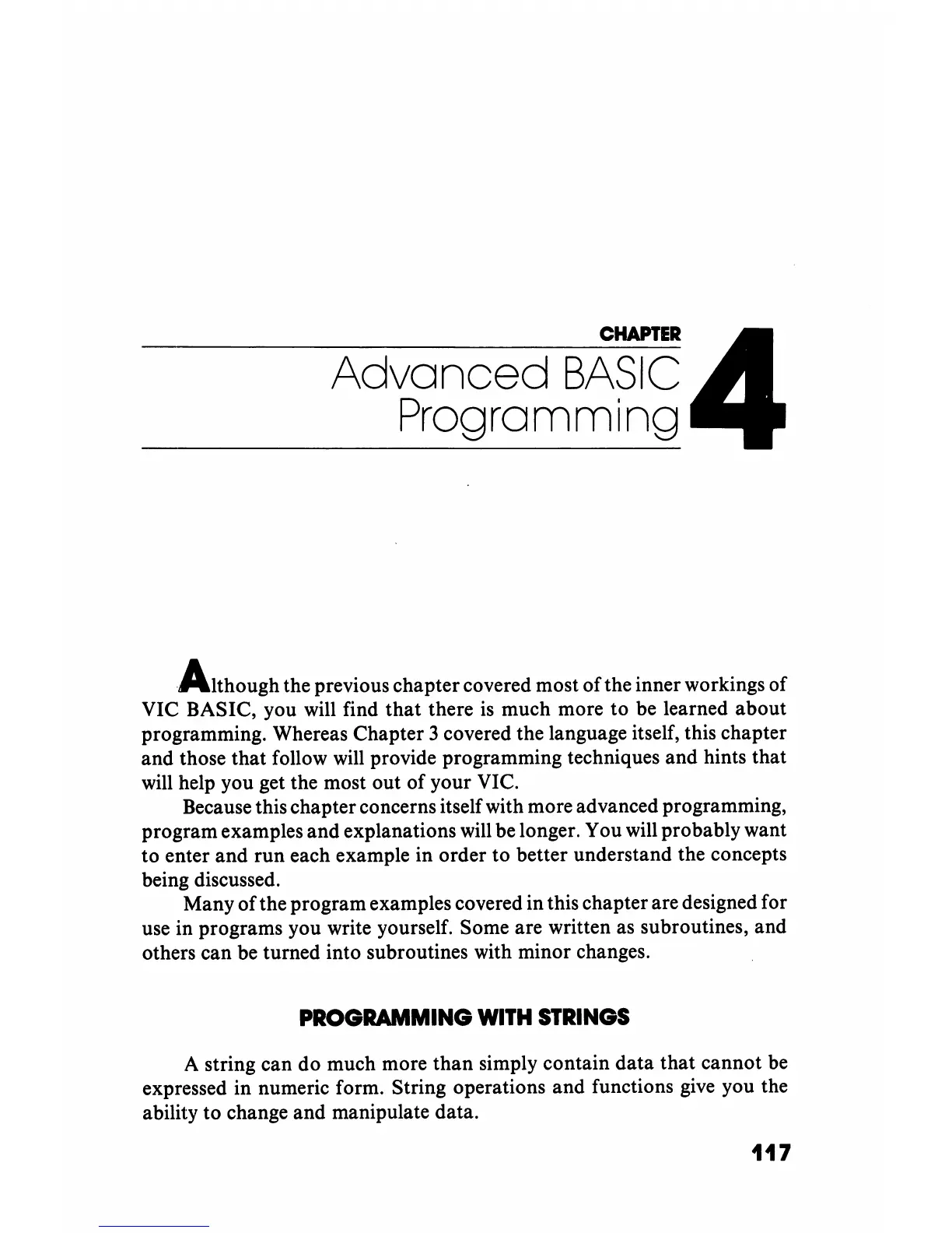 Because this chapter concerns itself with more advanced programming,