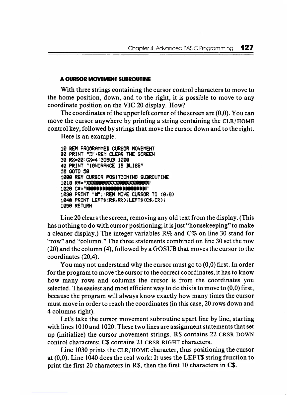 Let's take the cursor movement subroutine apart line by line, starting