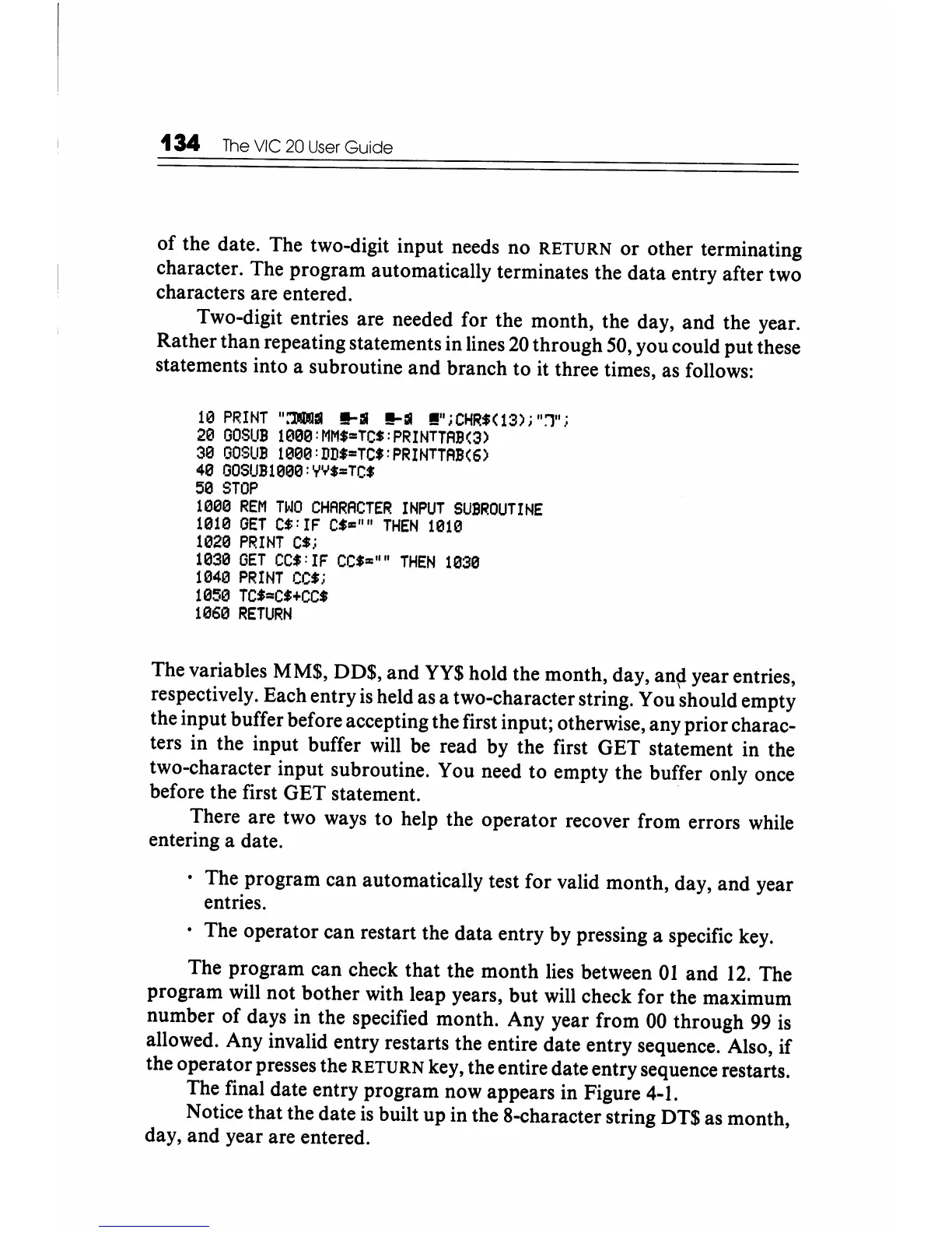 allowed. Any invalid entry restarts the entire date entry sequence. Also,