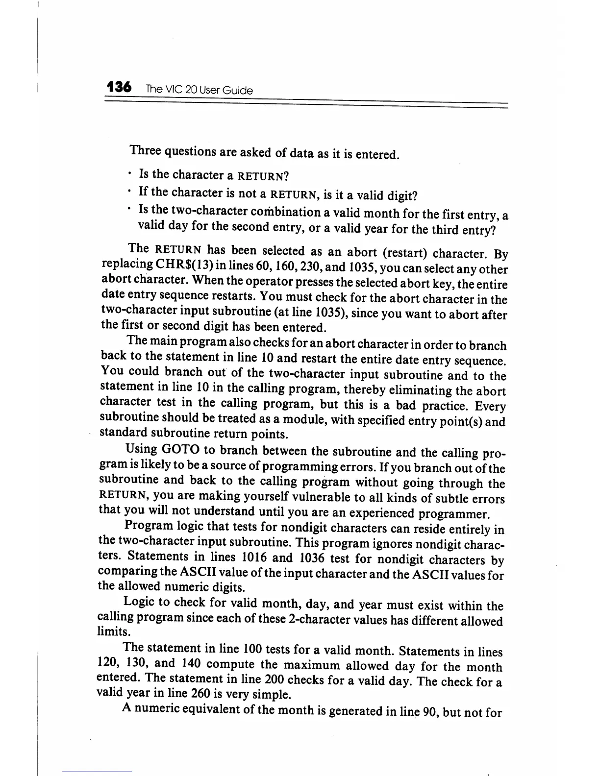 date entry sequence restarts. You must check for the abort character in the