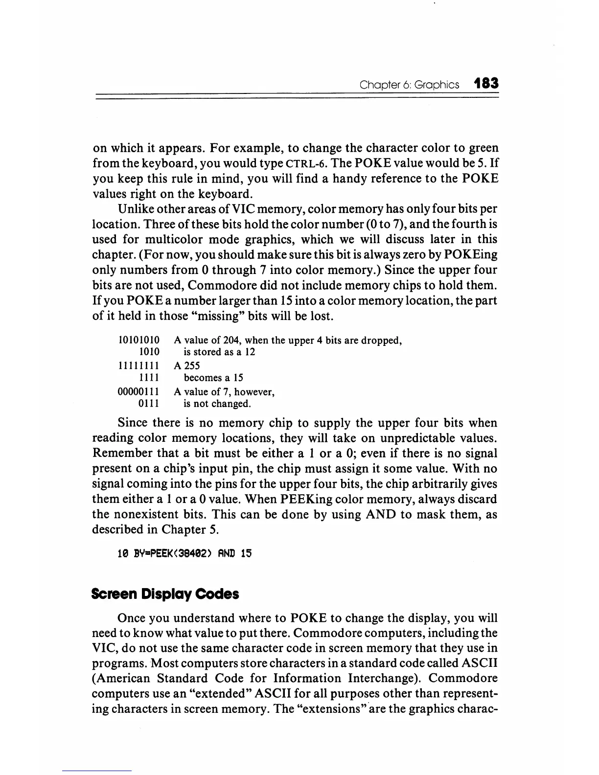 ing characters in screen memory. The "extensions"are the graphics charac-