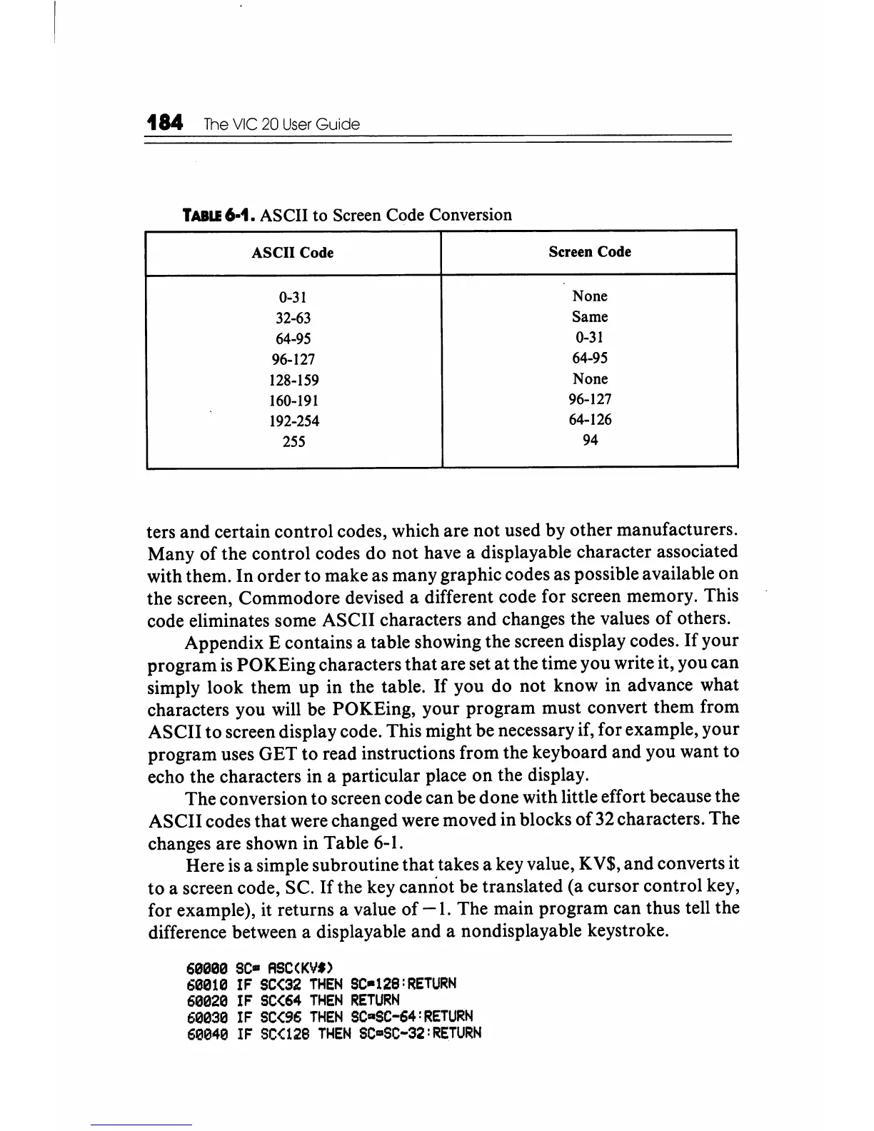 the screen, Commodore devised a different code for screen memory. This