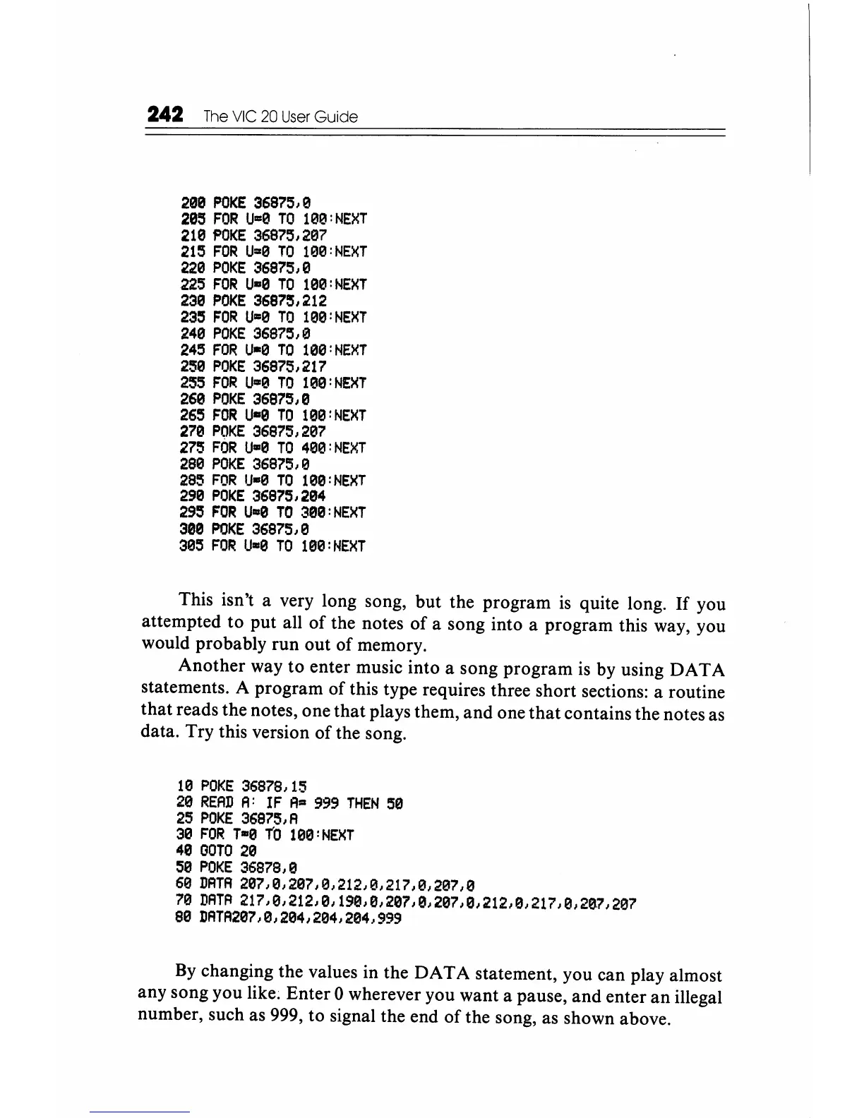 any song you like; Enter 0 wherever you want a pause,