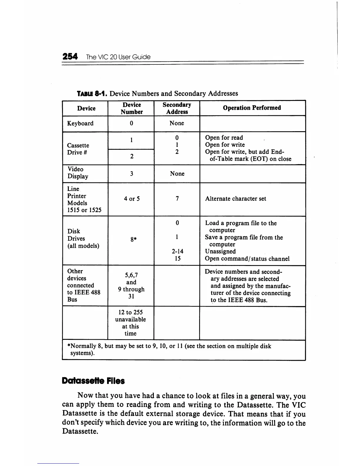 reading from and writing to the Datassette. The VIC