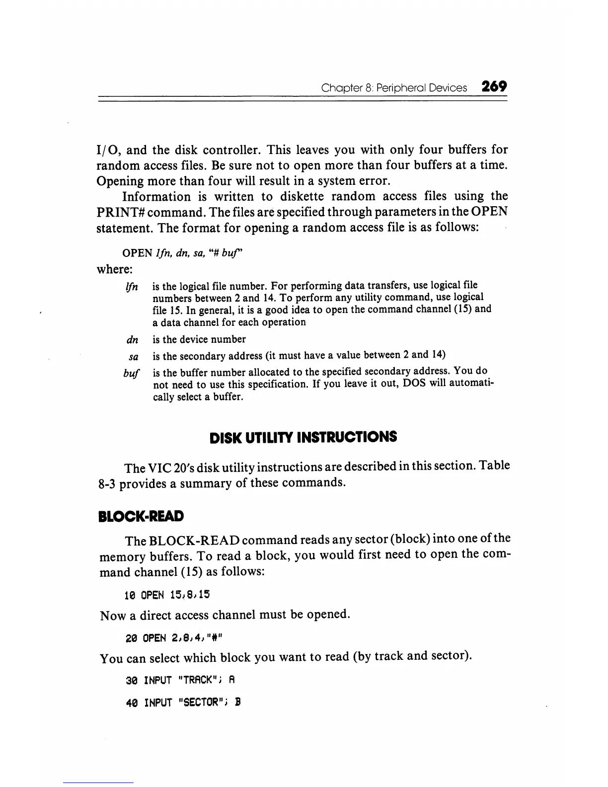The VIC 20's disk utility instructions are described in this section. Table