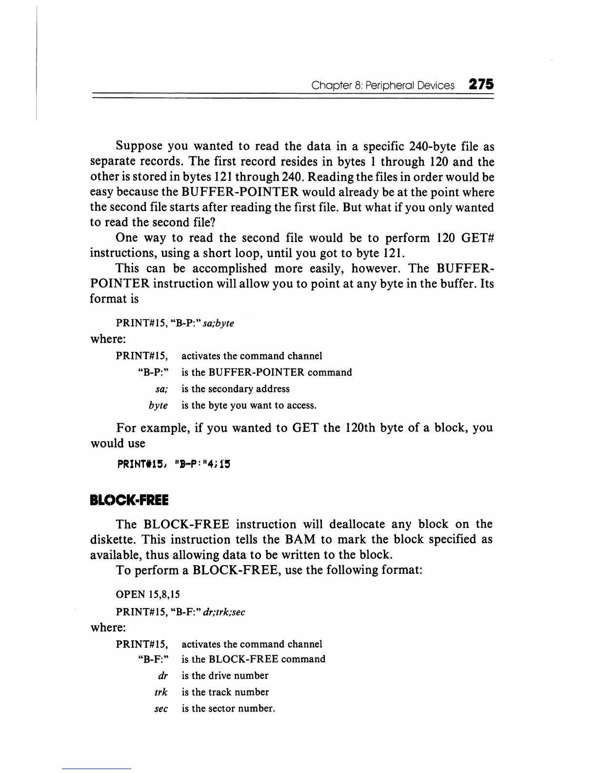 PRINT#15, "B-P:" sa;byte