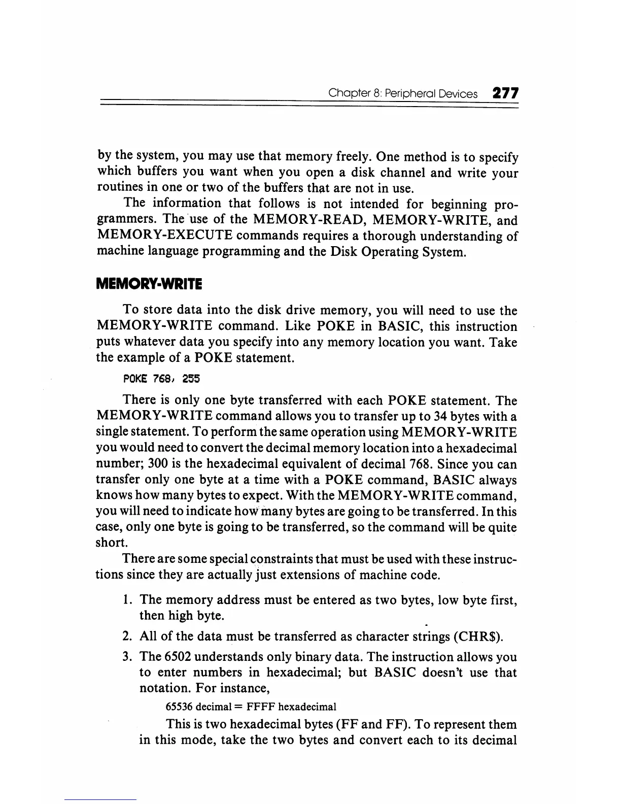 MEMORY-WRITE command. Like POKE in BASIC, this instruction