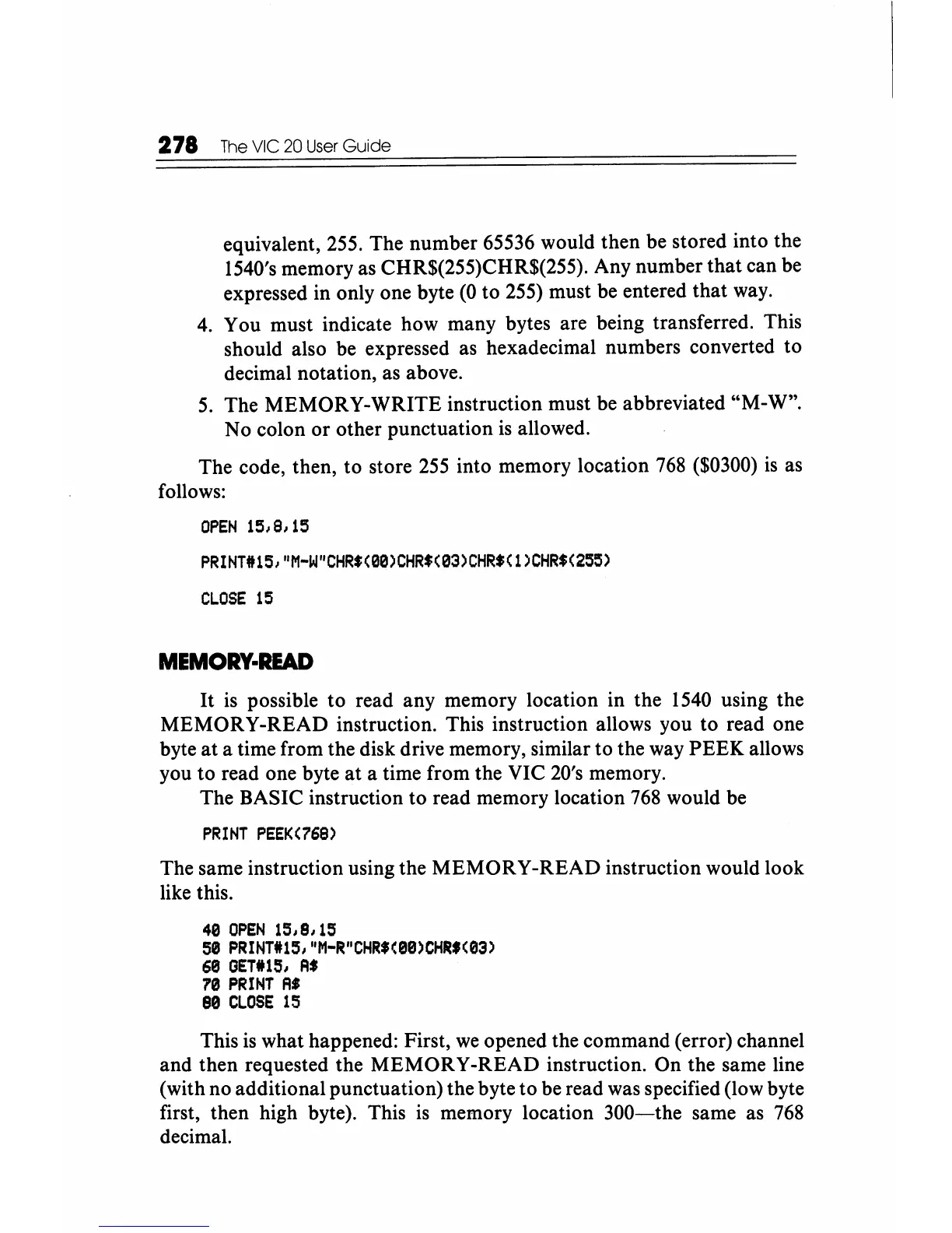 byte at a time from the disk drive memory, similar to the way PEEK allows