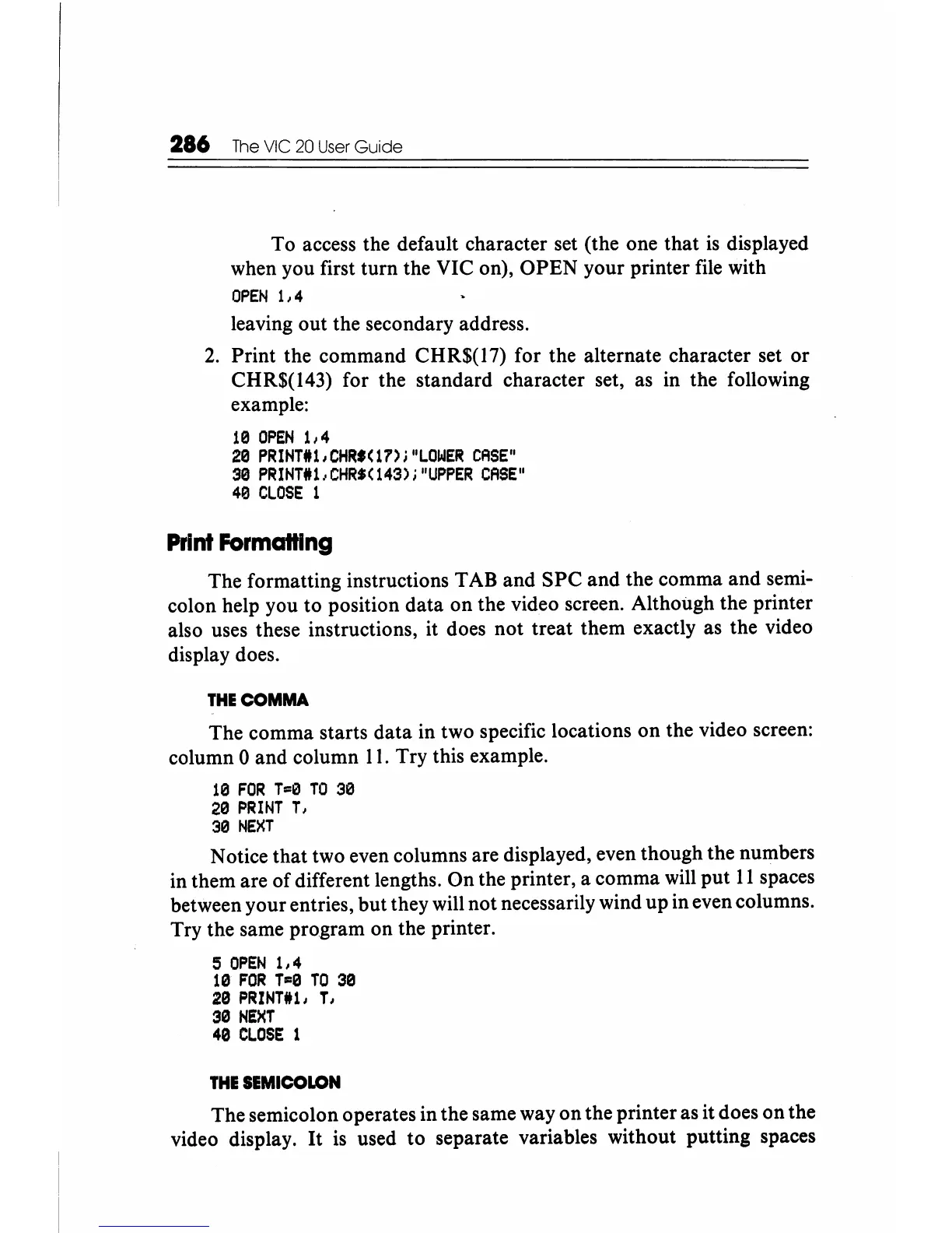 colon help you to position data on the video screen. Although the printer