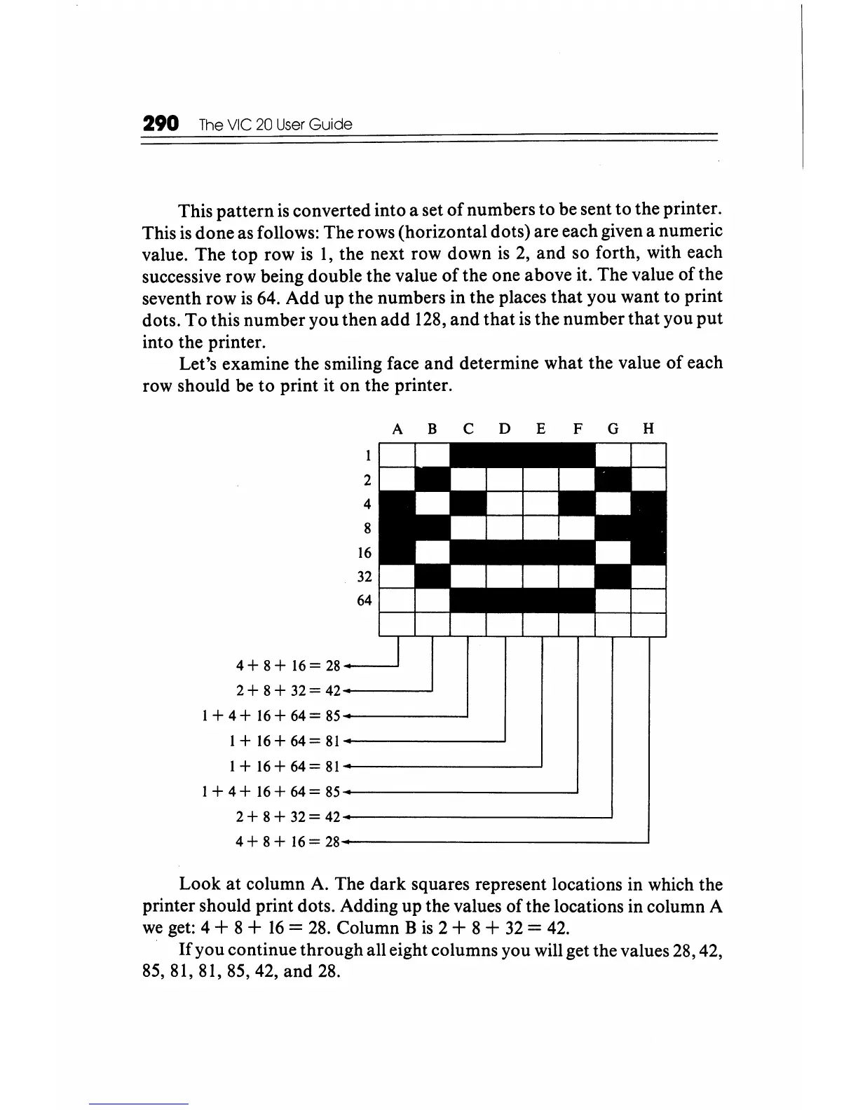 printer should print dots. Adding up the values
