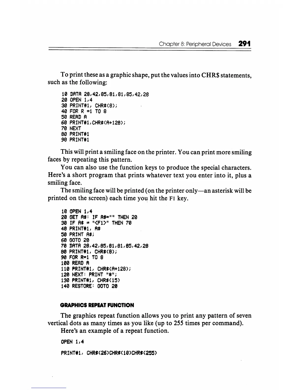 The graphics repeat function allows you to print any pattern