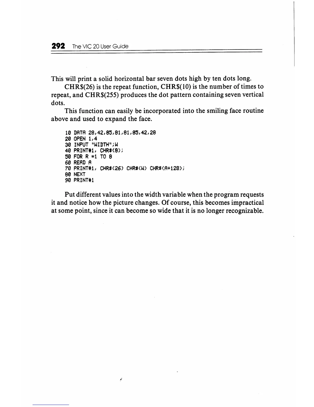 the repeat function, CHR$(lO)