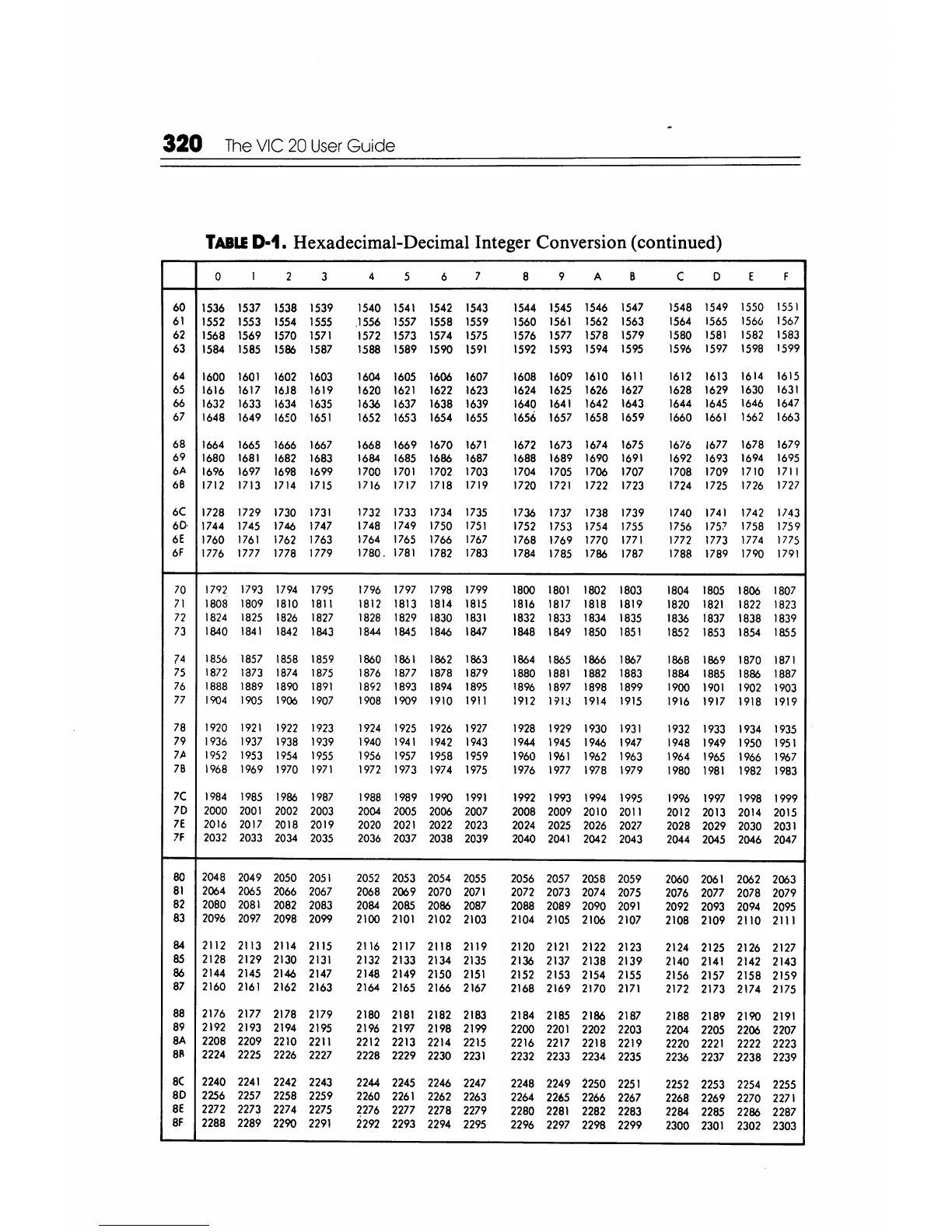 D·1. Hexadecimal-Decimal Integer Conversion (continued)