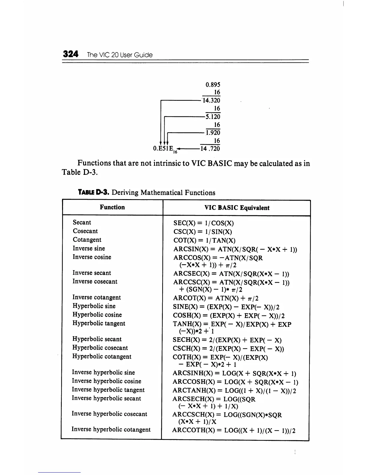 are not intrinsic to VIC BASIC may be calculated as in