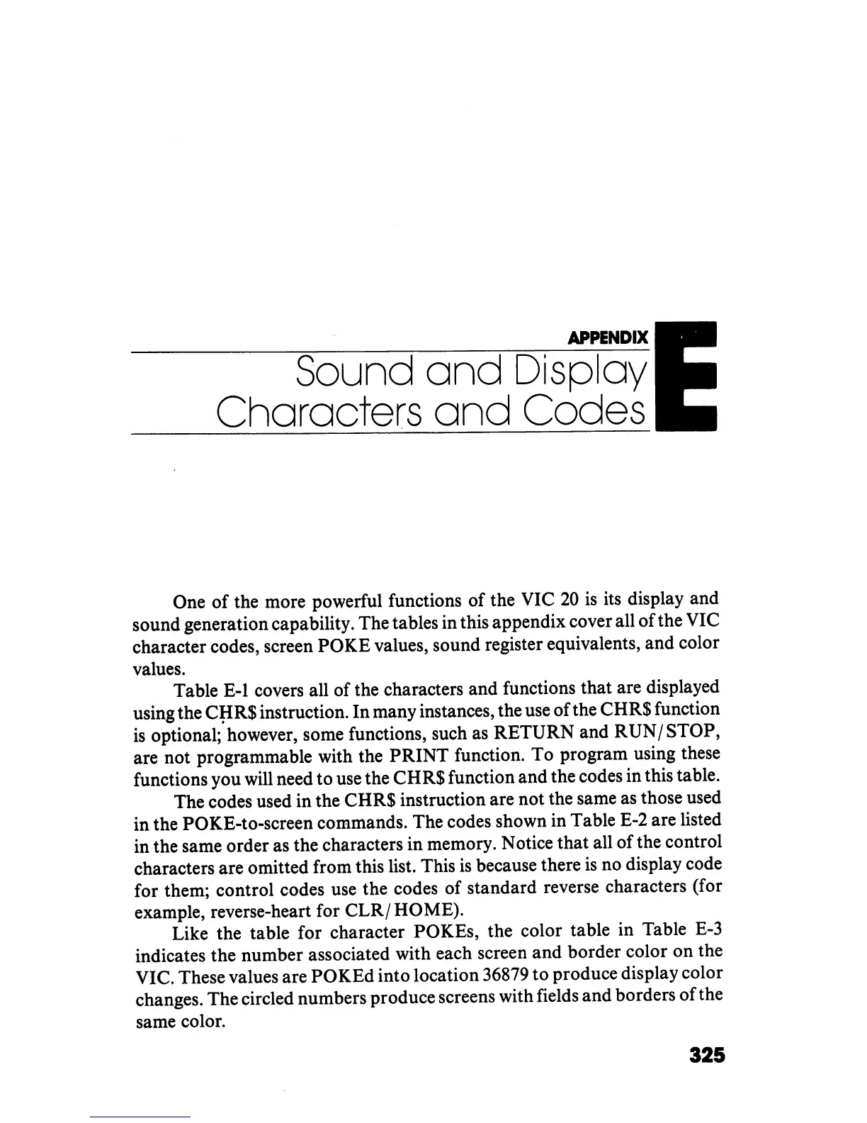 in the POKE-to-screen commands. The codes shown in Table E-2 are listed