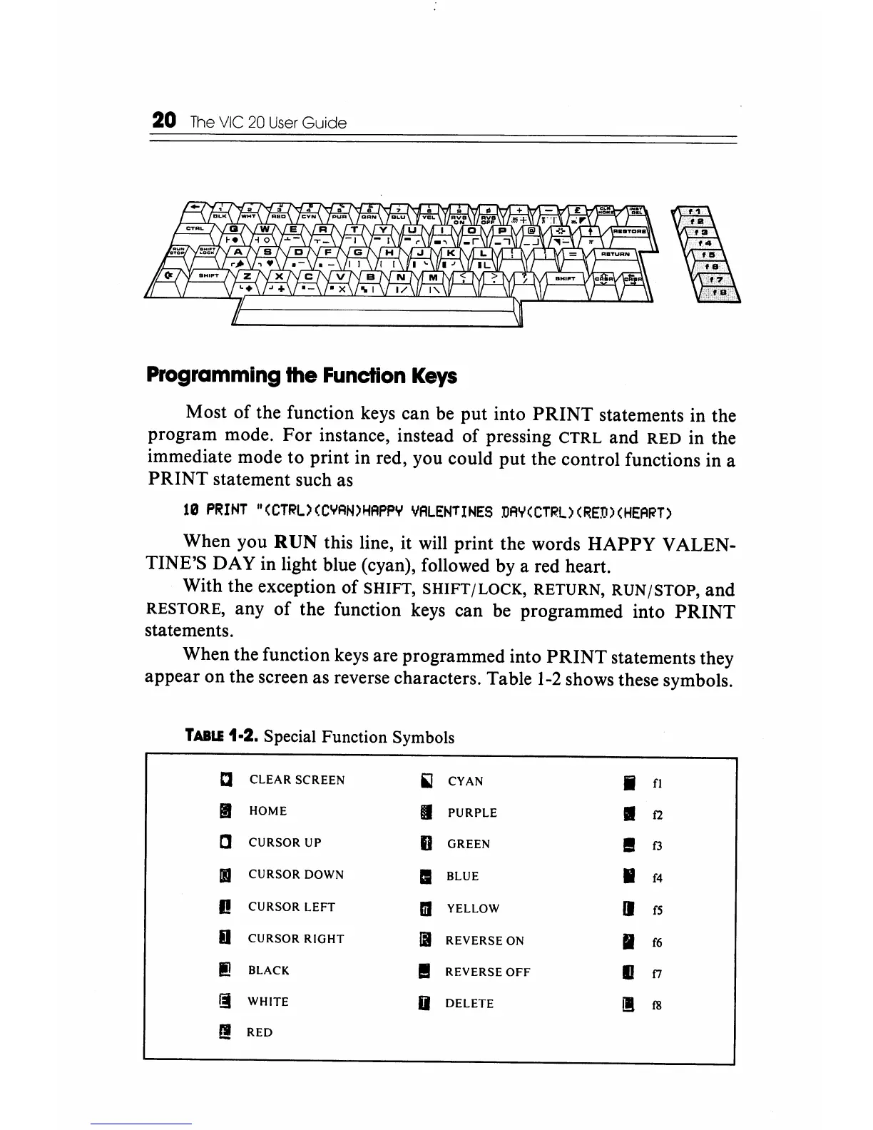 SHIFT, SHIFT/LOCK, RETURN, RUN/STOP, and
