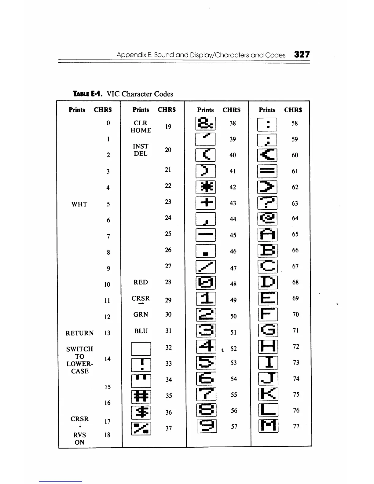 VIC Character Codes