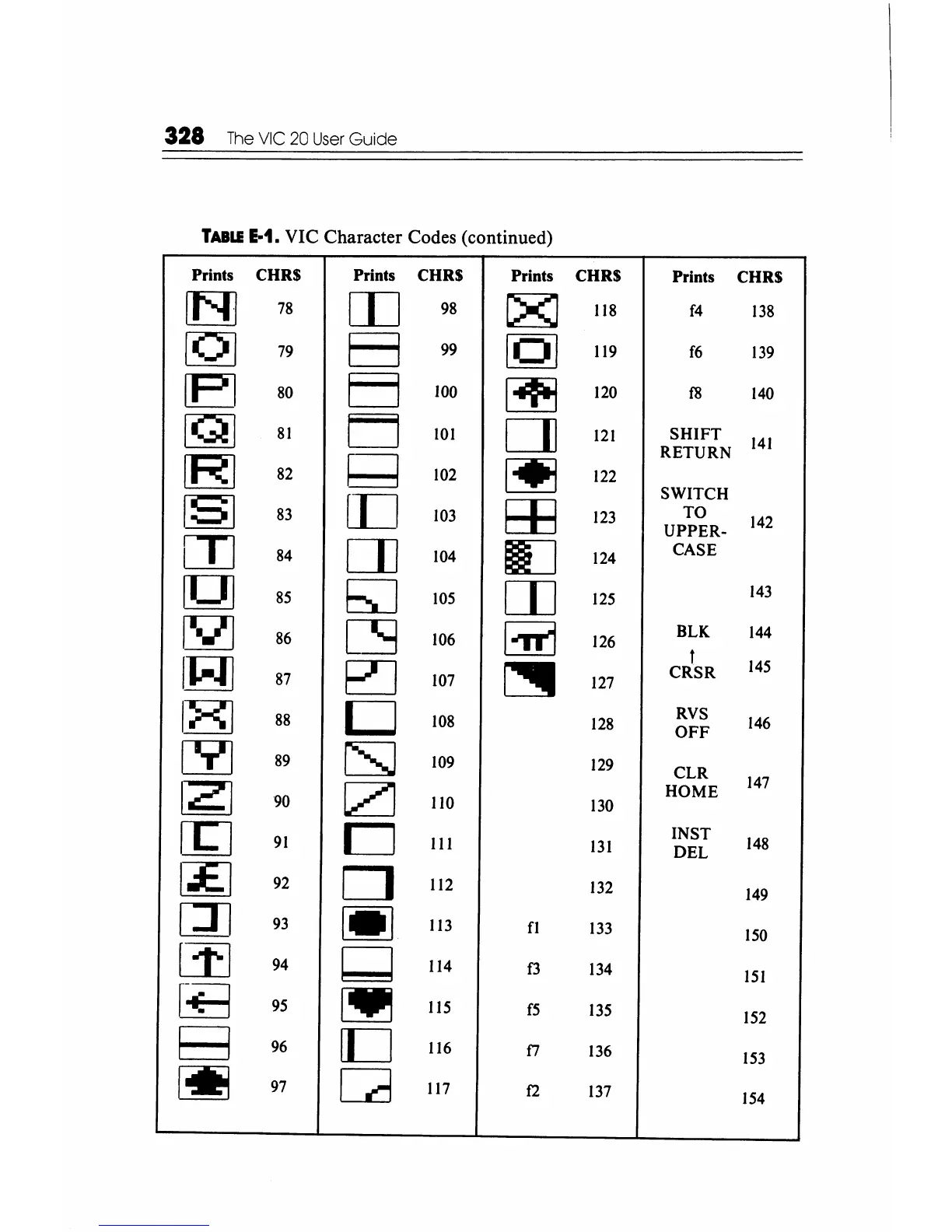 VIC Character Codes (continued)