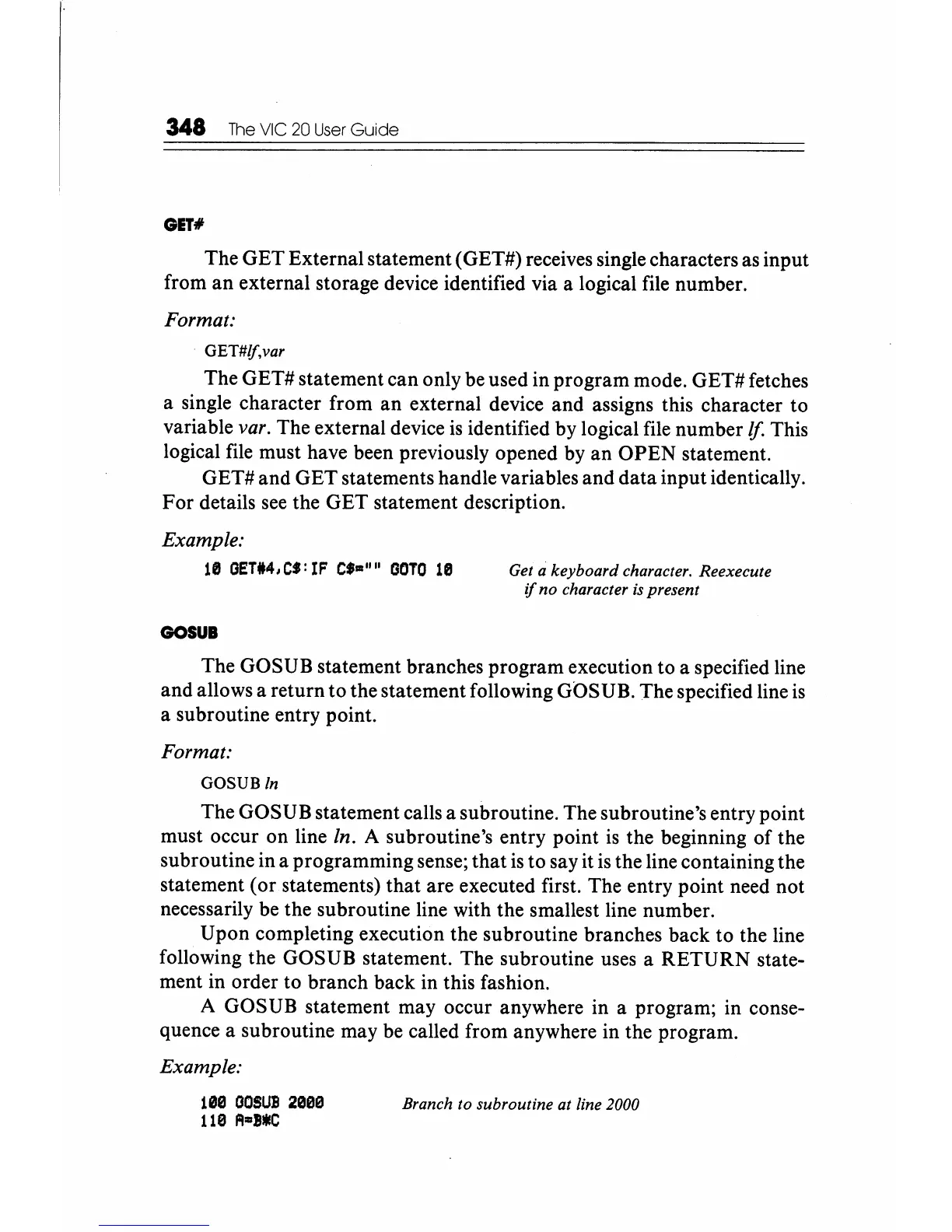 The GOSUB statement calls a subroutine. The subroutine's entry point