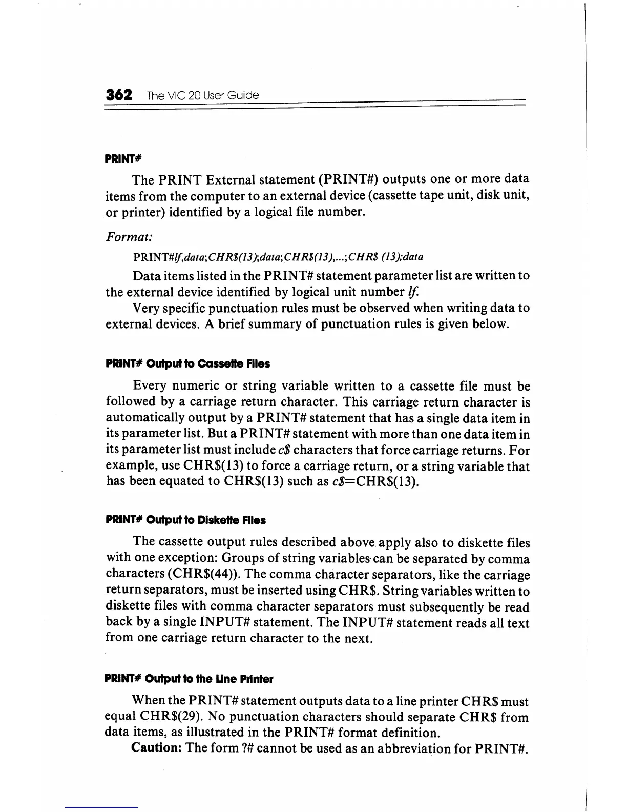 External statement (PRINT#) outputs one