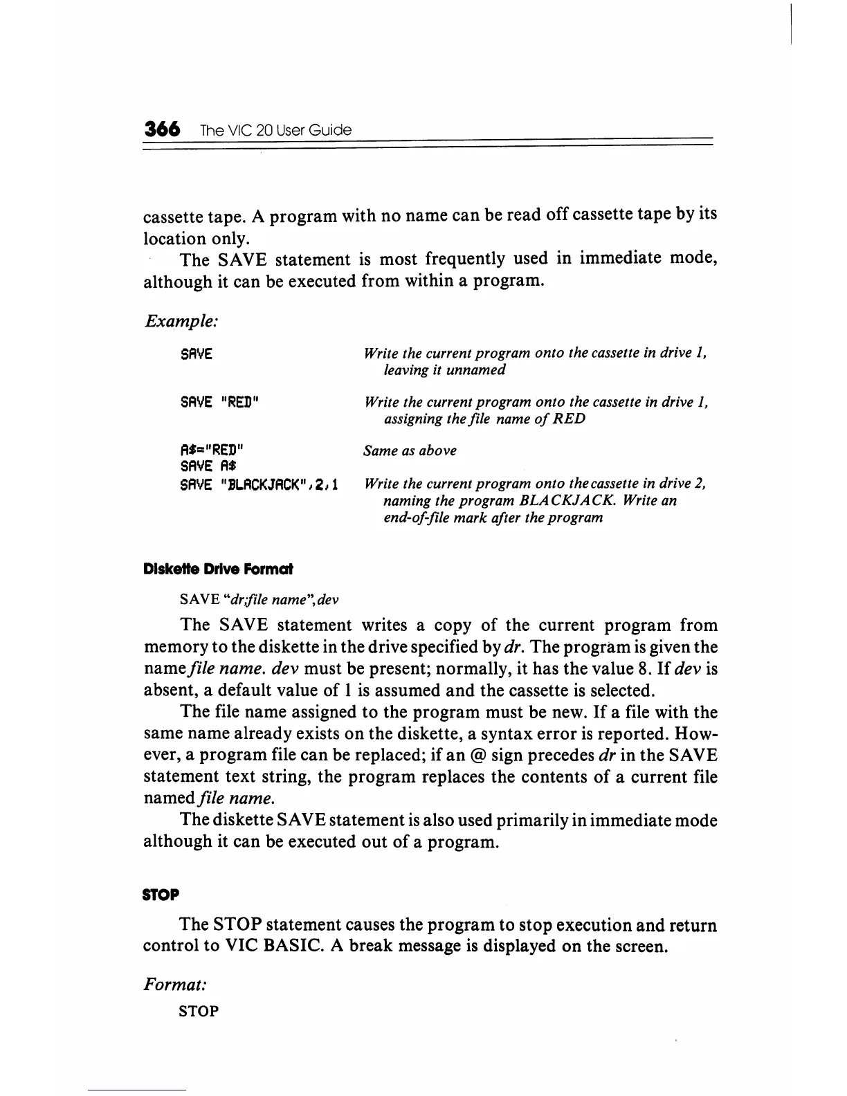 The diskette SAVE statement