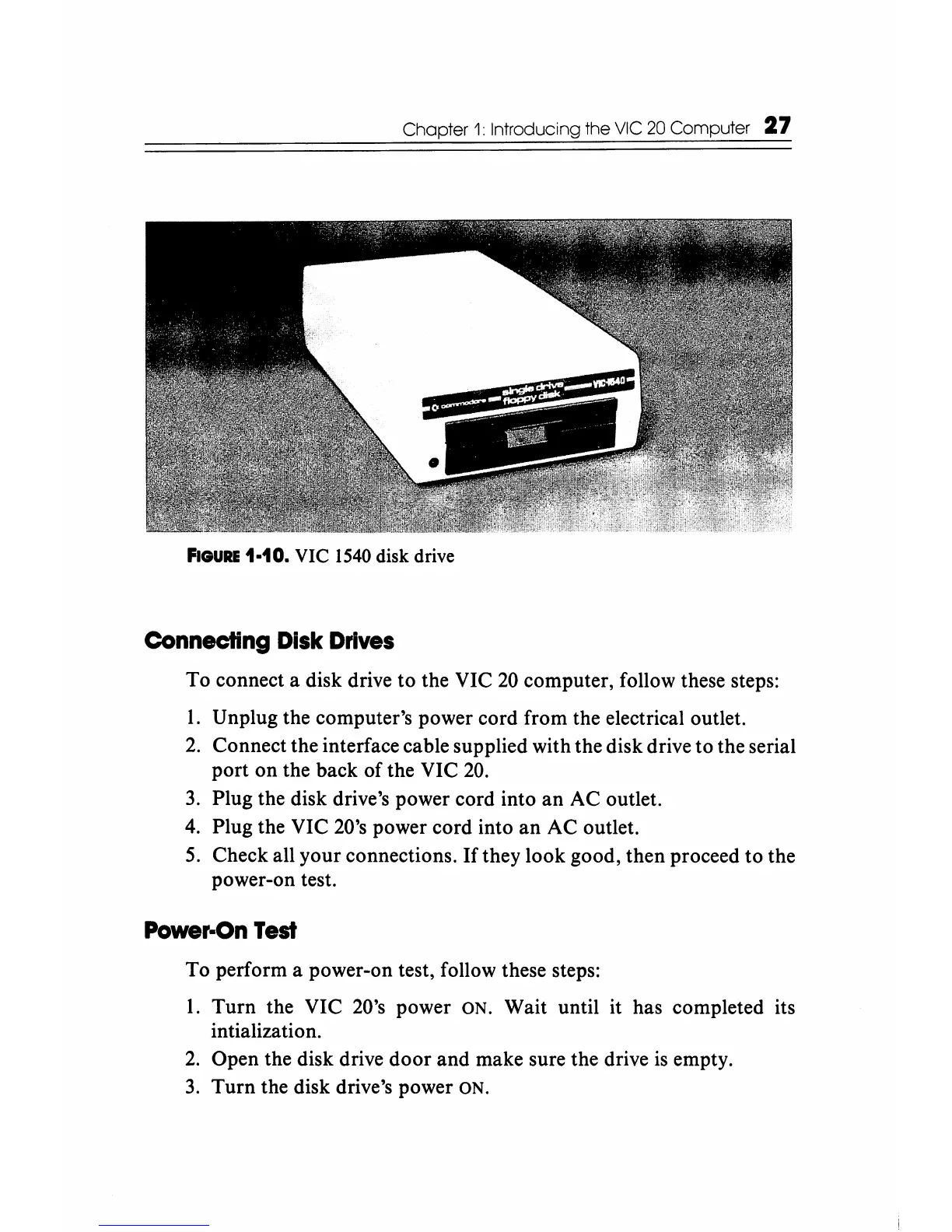 Turn the VIC 20's power ON. Wait until it has completed its