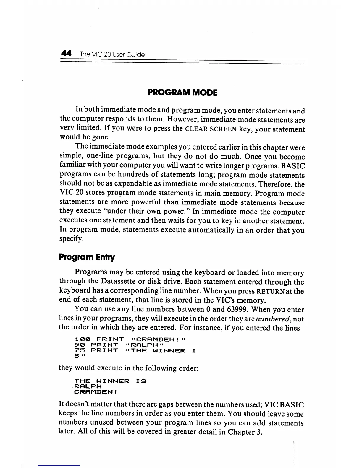 doesn't matter that there are gaps between the numbers used; VIC BASIC