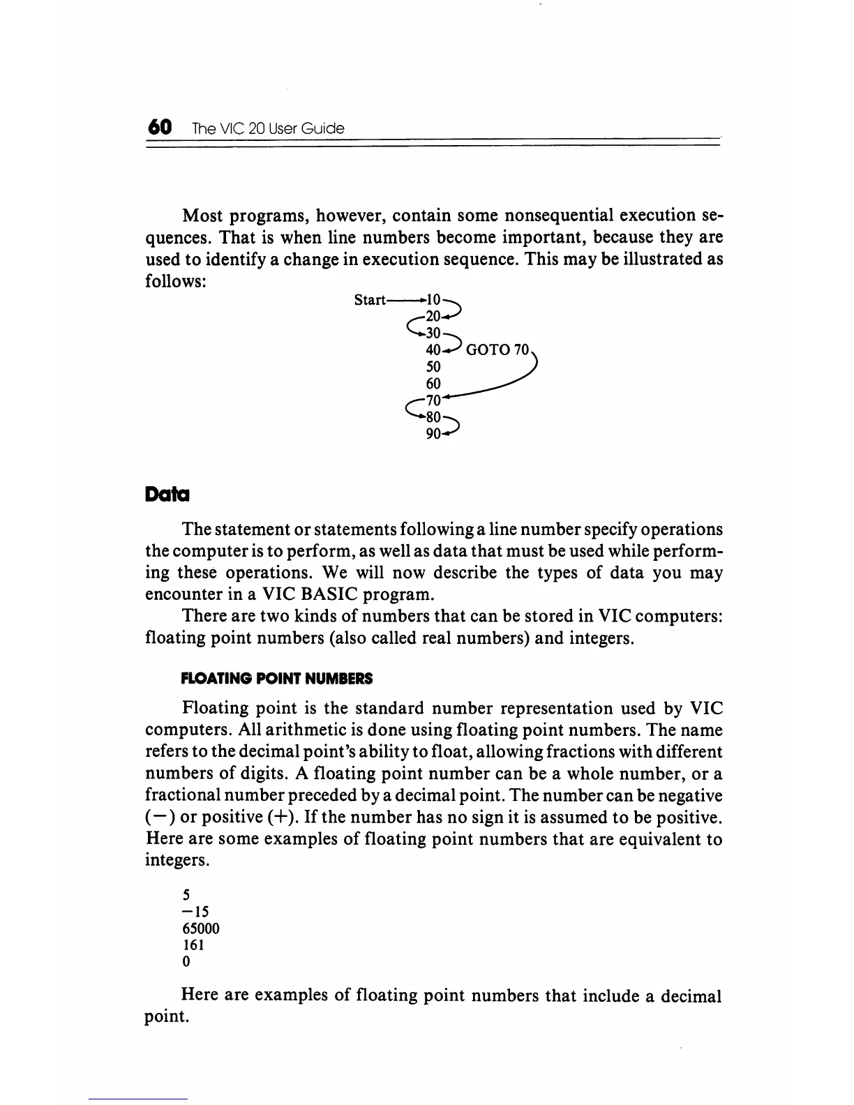 Floating point is the standard number representation used by VIC