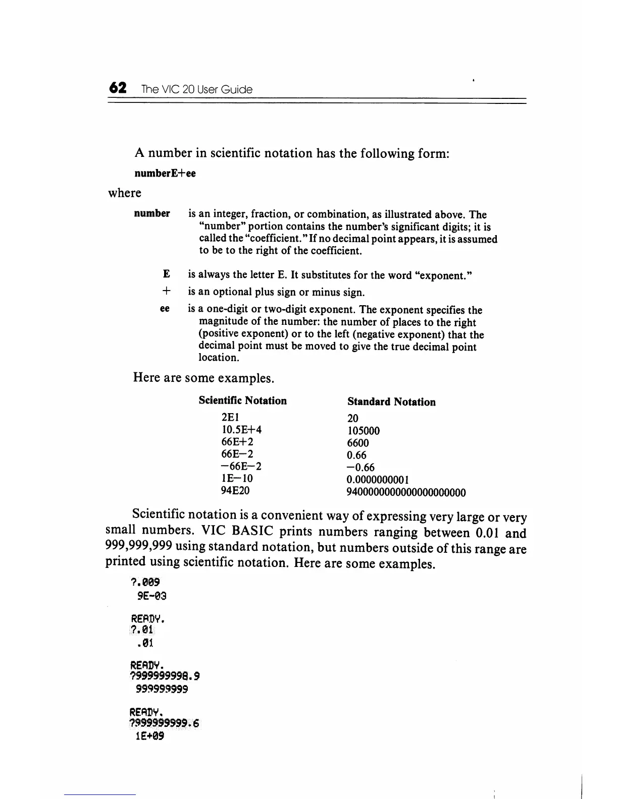 small numbers. VIC BASIC prints numbers ranging between