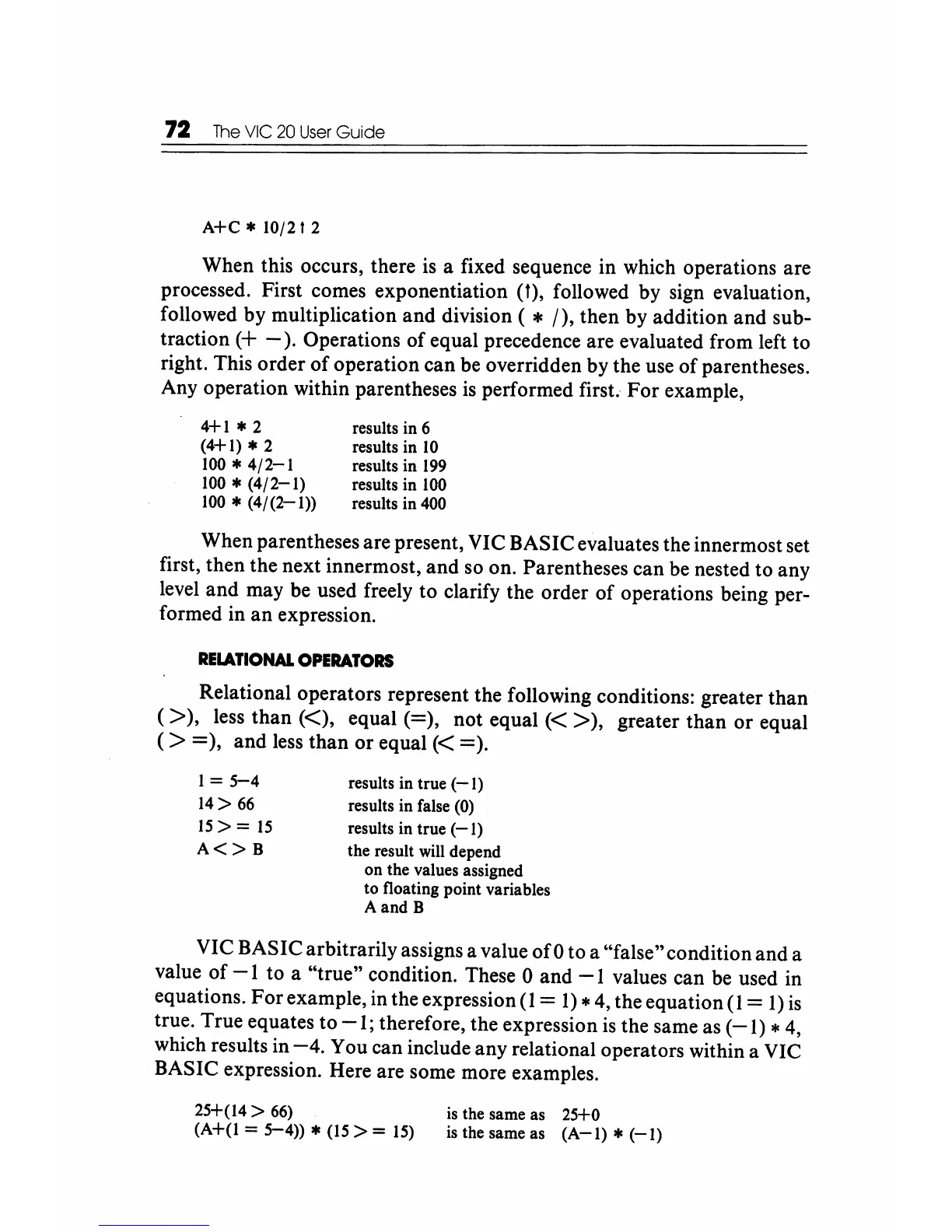 When parentheses are present, VIC BASIC evaluates the innermost set