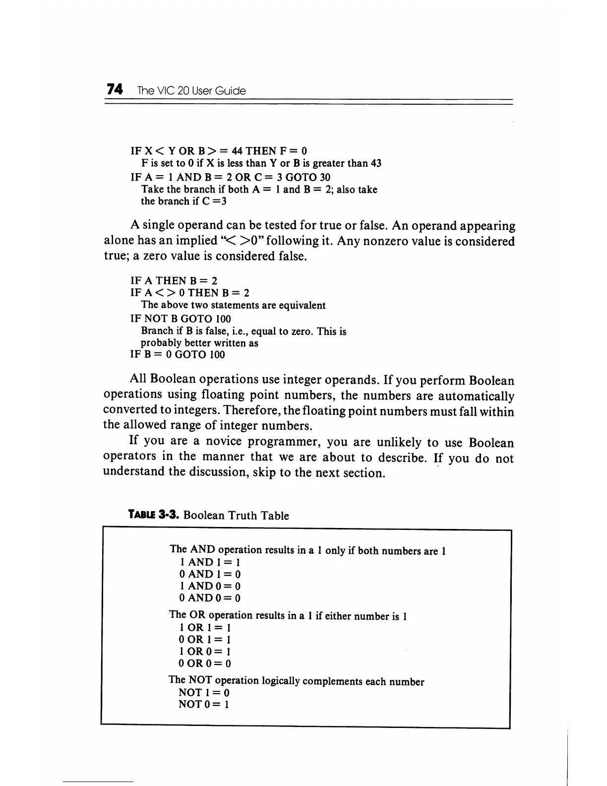 All Boolean operations use integer operands.