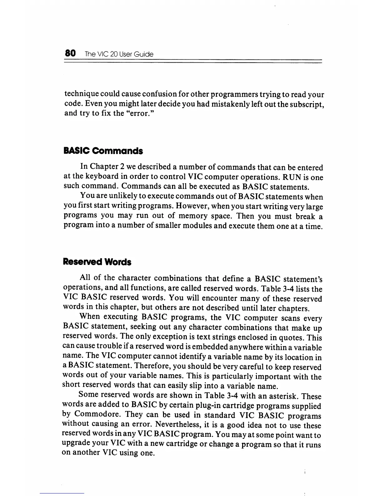 reserved words in any VIC BASIC program. You may