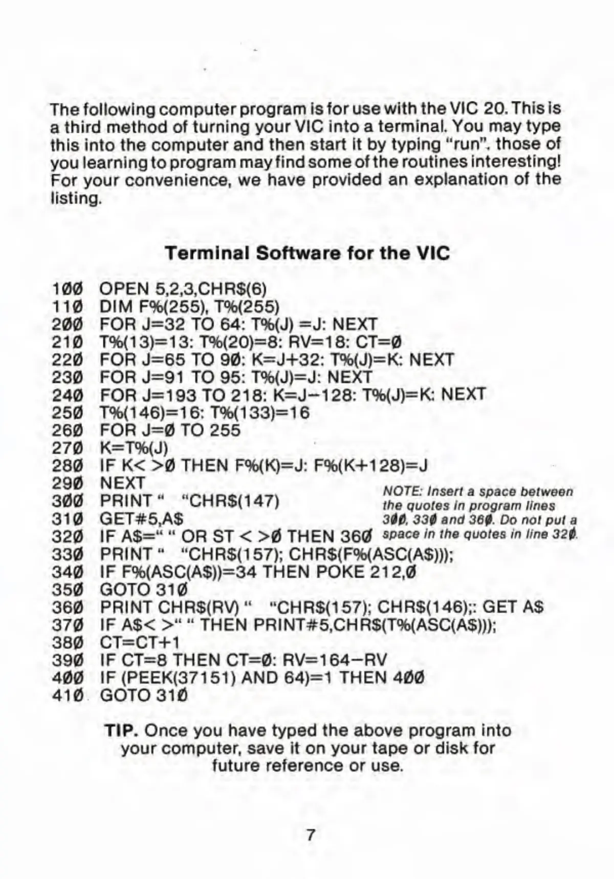 200 FOR J=32 TO 64: T%(J) =J: NEXT