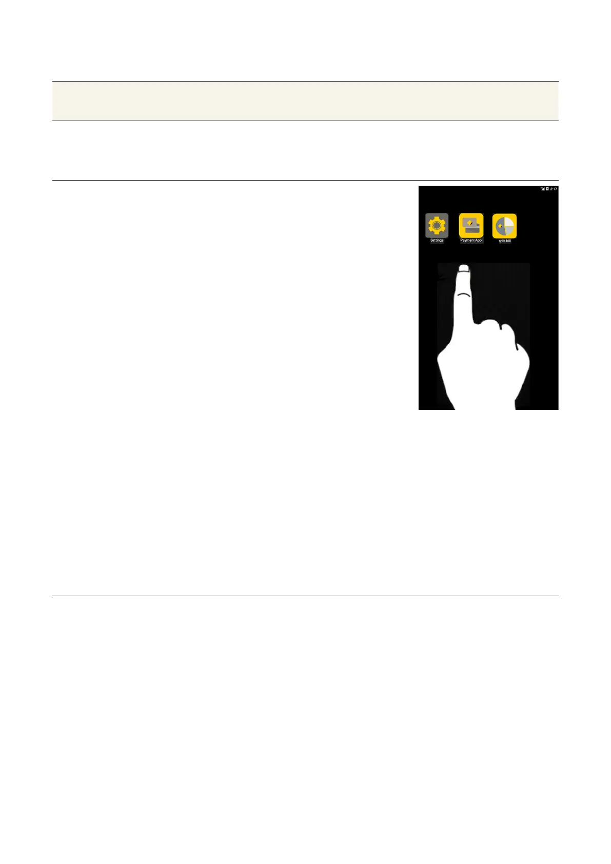 Home screen Launch the Payment App: