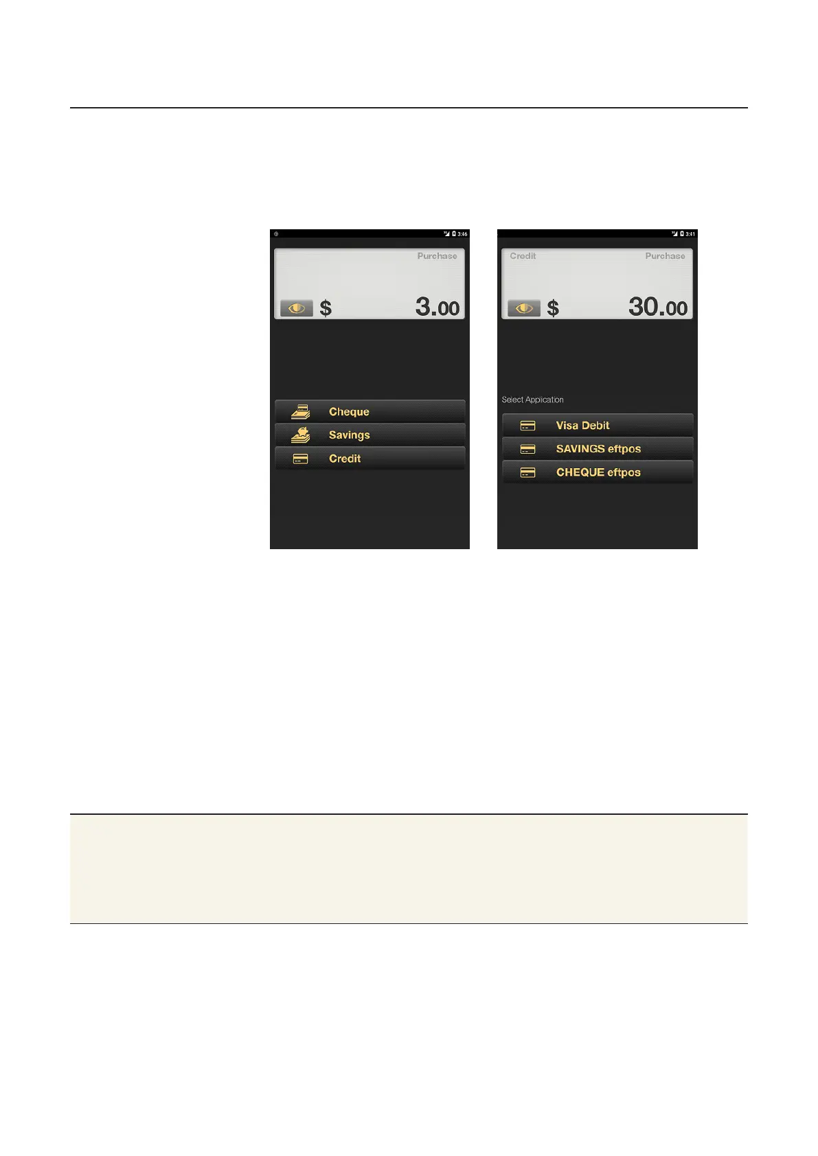 5. The screen displays Cheque, Savings, or Credit under the