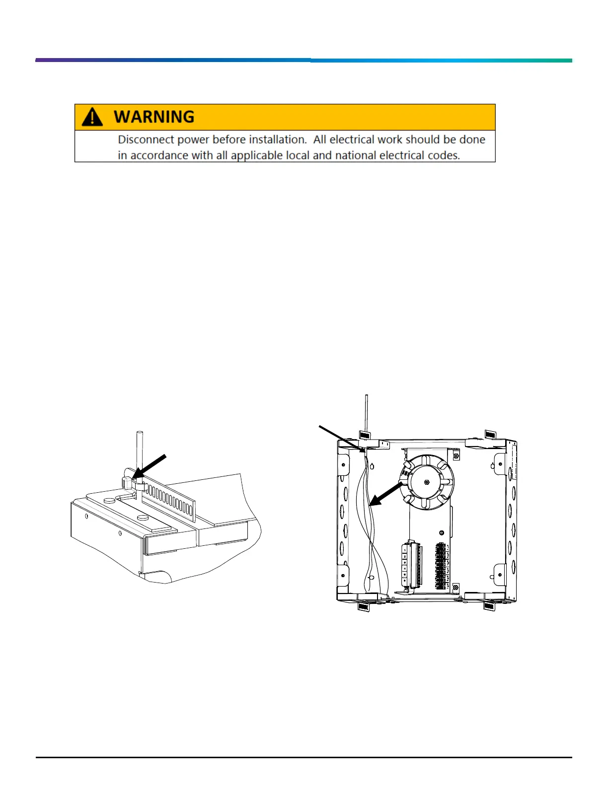 1. Route the incoming PFC into the TB and secure to the strain relief bar with a supplied cable