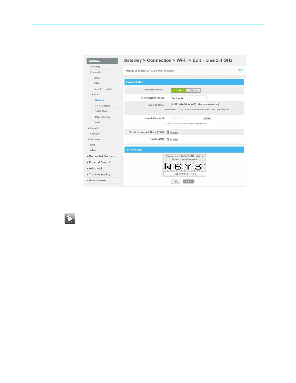 Network 2.4 GHz EDIT button.