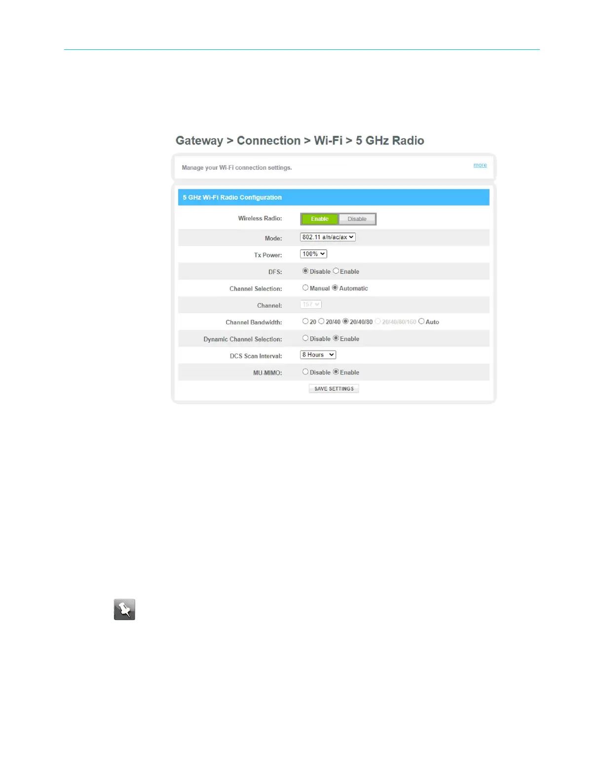 Figure 29: Wi-Fi connection 5GHz Radio screen