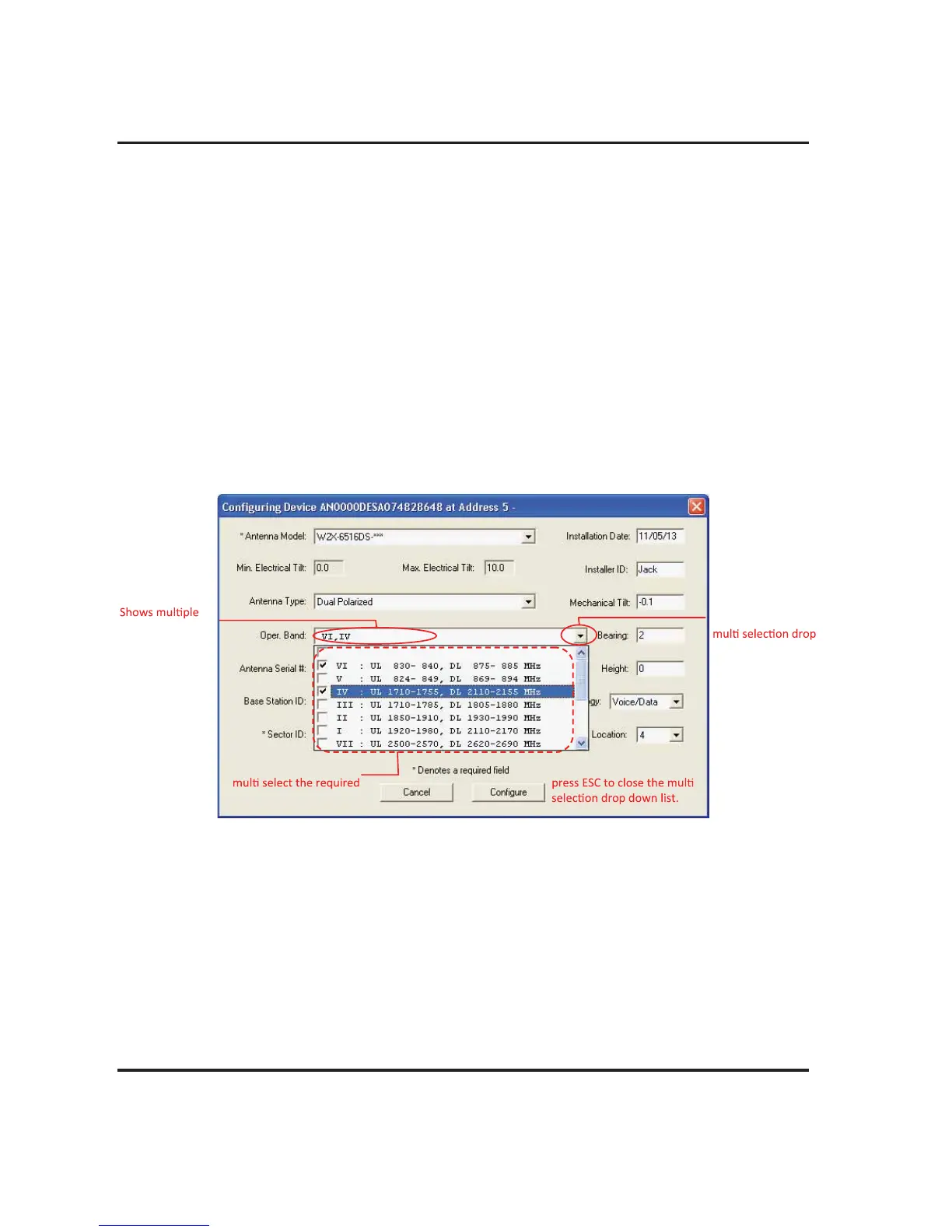 • Frequency band (AISG 1.1)/Operating Band (AISG 2.0) value can have multiple values set.