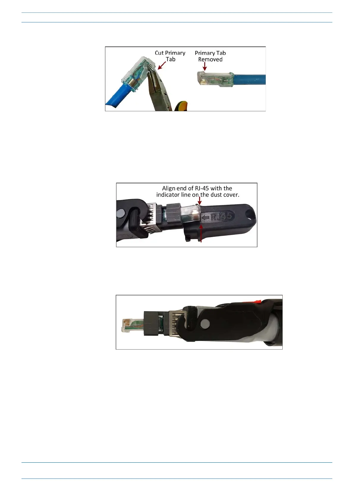 2 Remove the primary tab of the RJ-45 connector using wire cutters.
