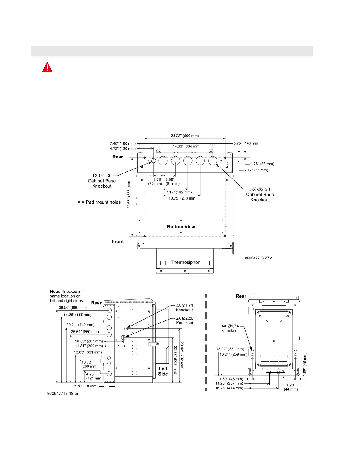 Figure 24. Cabinet Base Knockout Locations, CMC-21, 28, 35