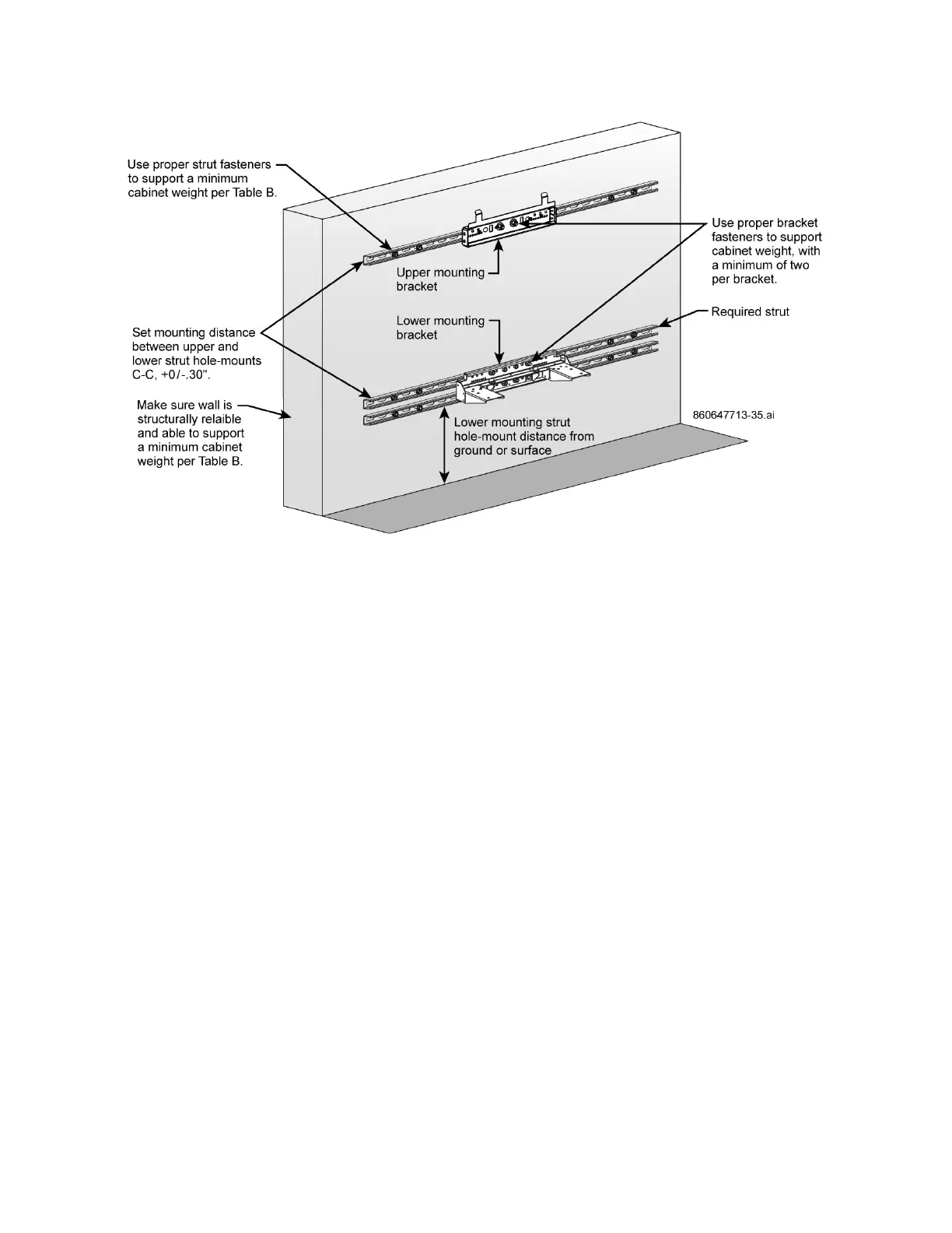 Note: Make sure the poles and frame can support a minimum cabinet weight per Table C and are