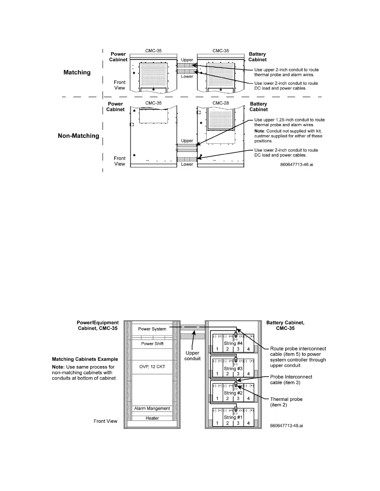 Figure 47. Conduit Locations, CMC Matching and Non-Matching Cabinets