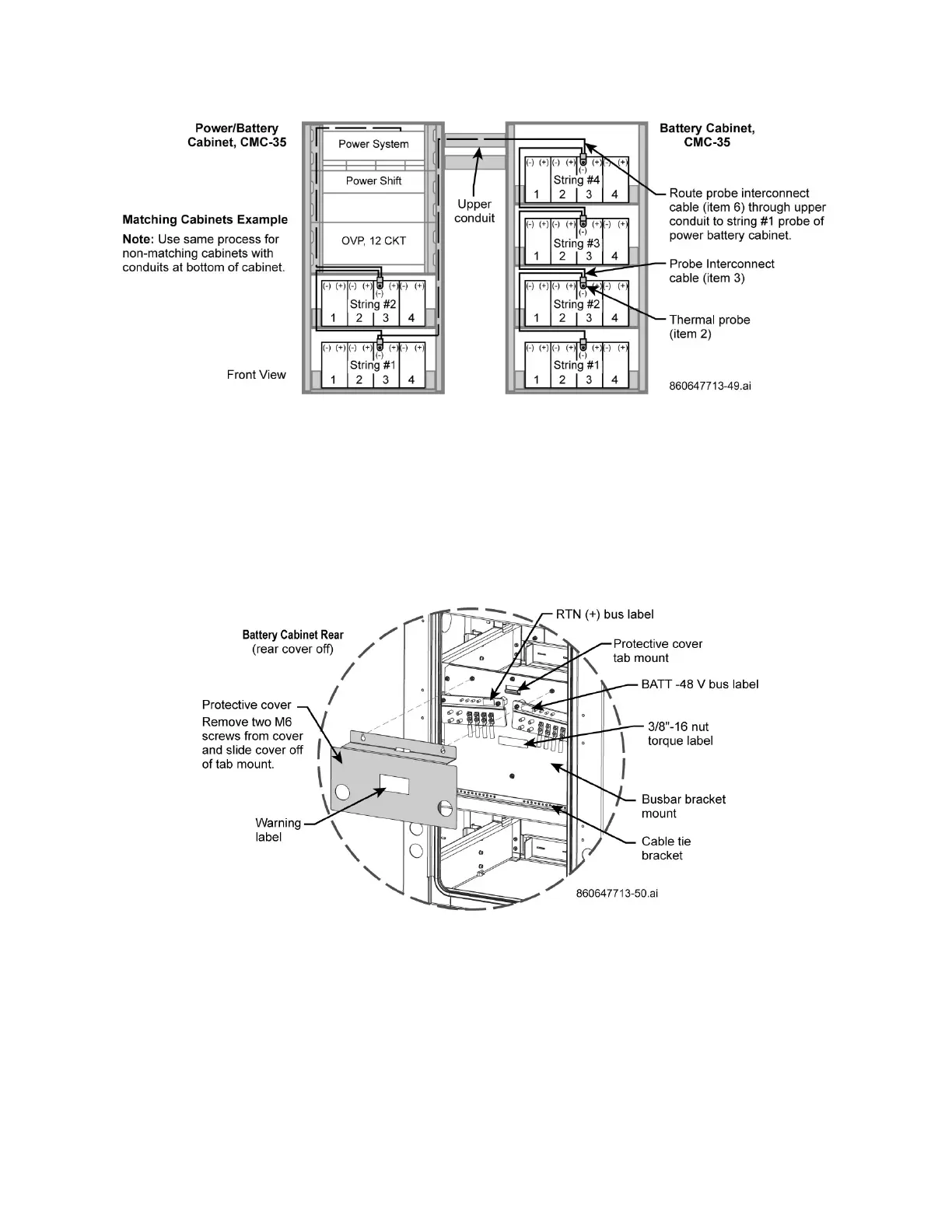 c. Route cables through lower conduit to power cabinet; Figure 47, Figure 50, Figure 51.
